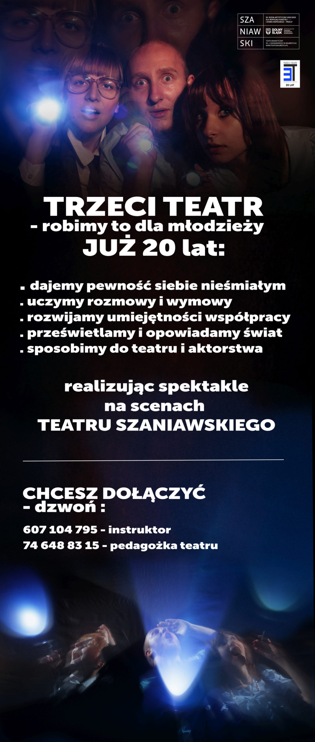 Chcesz poznać więcej szczegółów? Napisz, wszelkich informacji udzieli instruktor Trzeciego Teatru Grzegorz Stawiak, e mail: grzestaw@pnet.pl lub pedagog Teatru Nikola Olszak pedagogteatru@teatr.walbrzych.pl